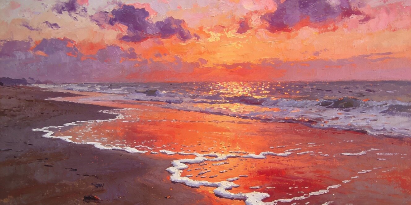 我开始在涨潮时分散步。潮线每天不同,像大地阅读海水后留下的批注。某处沙地上有鸟爪的印迹,不远处是半融的沙堡,更远处,一个被遗忘的漂流瓶正慢慢变成礁石的一部分。原来万物都在以消逝的方式持续存在——我们以为的尽头,不过是形态完成了最后一次温柔的迁徙。